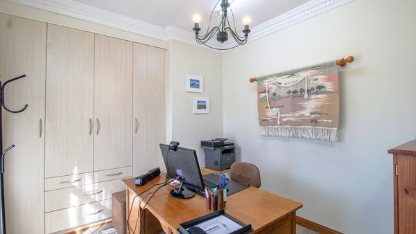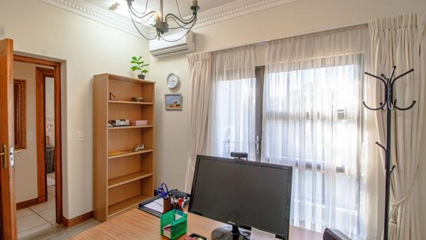 An entertainers dream, the entertainment room boasts a built-in gas braai and opens effortlessly onto the garden, where a recently redone swimming pool (just 6 months old) invites you to unwind in a serene outdoor setting. A central atrium brings natural light and a touch of tranquility to the home, creating a beautiful indoor-outdoor harmony.