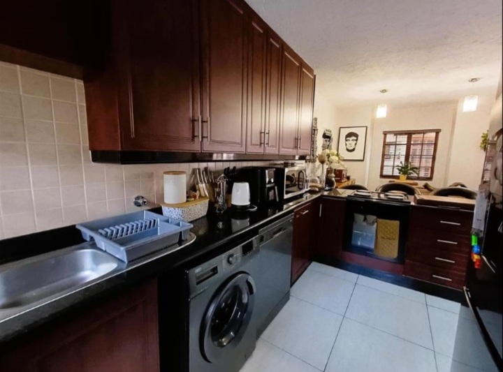 This lovely three-bedroom apartment boasts a neat bathroom and features a stylish rosewood kitchen adorned with elegant granite counter-tops, seamlessly flowing into comfortable open-plan living areas that invite relaxation and entertainment.