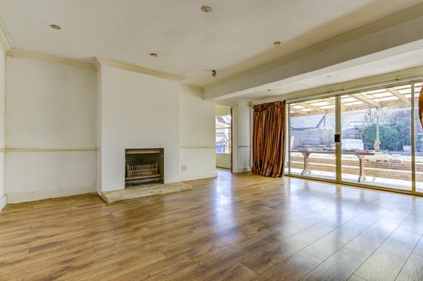 The spacious lounge with fireplace with sliding door opening onto a covered patio and pool area