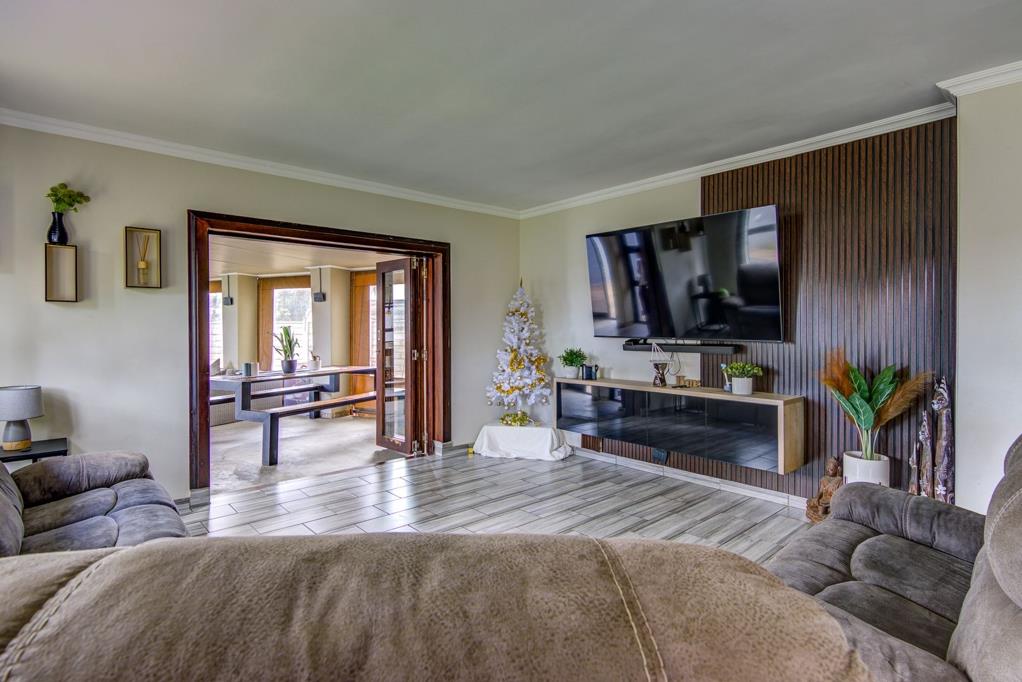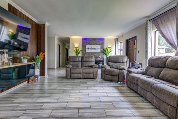 This home offers it all... Tiled throughout, 8 KVA inverter with panels, state of the art alarm system, beams and an 8 foot wall with electric fencing, swimming pool, stunning entertainment area with built in braai, 1 bedroom dwelling, carport for 4 cars, and ample space for kids to play.