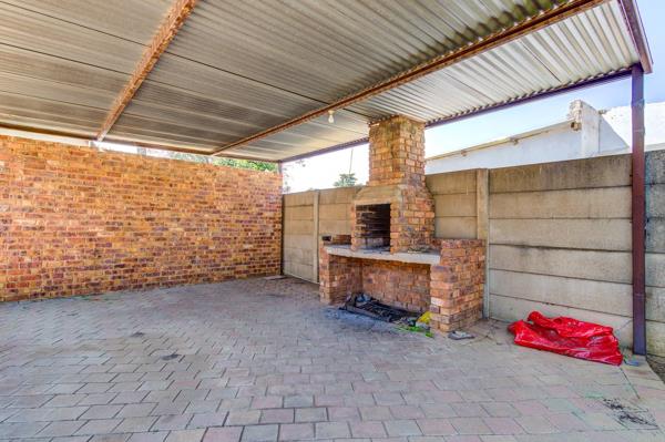Outdoor living is a highlight, with a private swimming pool and extensive brick paving creating an ideal setting for relaxation and entertainment. A built-in braai area provides the perfect spot for outdoor cooking. The large garden offers potential for further landscaping, and the property is pet-friendly. Security is addressed with burglar bars on windows and a totally walled perimeter, ensuring peace of mind.