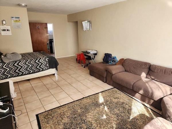 Step into a tiled entrance hall which leads into a spacious combined lounge and dining room. The kitchen is convenient with tiled floors, melamine cupboards with ample cupboard space, and a four-plate stove.