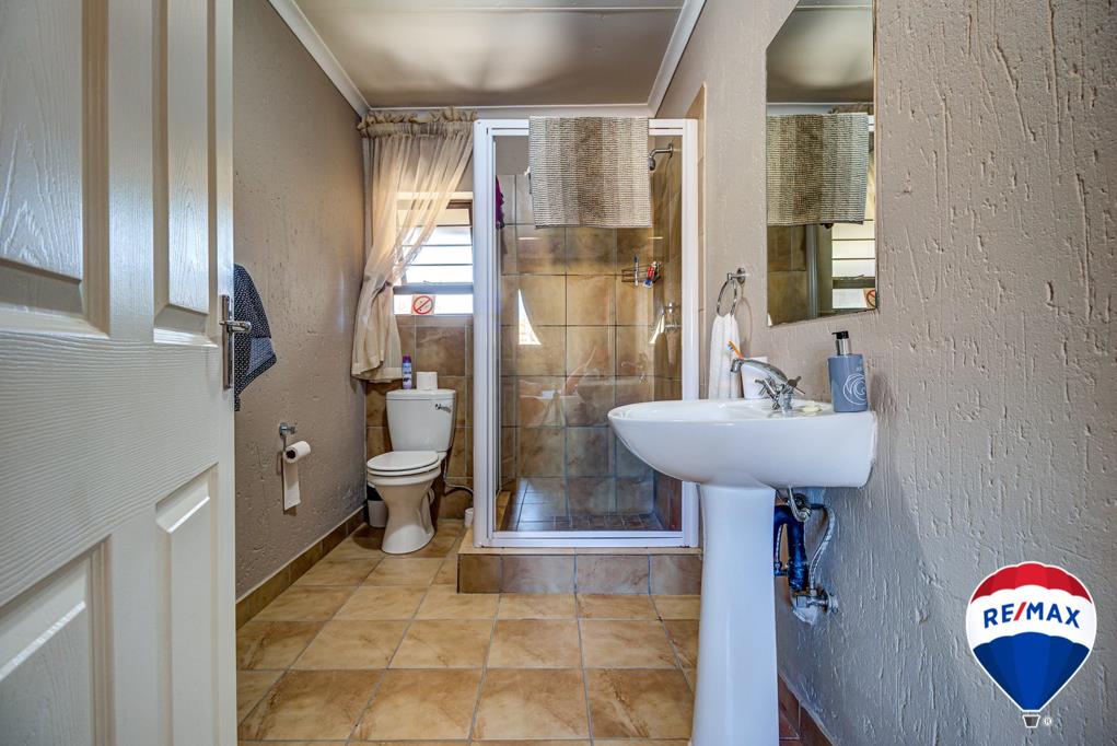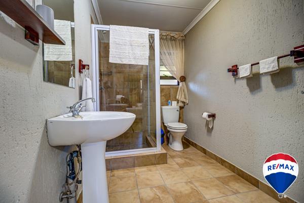 When you enter the home the entrance hall is beautiful spacious and a study and lounge leads from it together with a guest bathroom. The kitchen area is beautiful with granite tops, a gas stove and LOTS of cupboards space and is open plan with a very large dining room area. There is a huge scullery with space for all your appliances and that also leads to the 4 automated garages. The main house offers 5 bedrooms of which 4 are en-suite. The bedrooms and bathrooms are spacious, neat and modern.