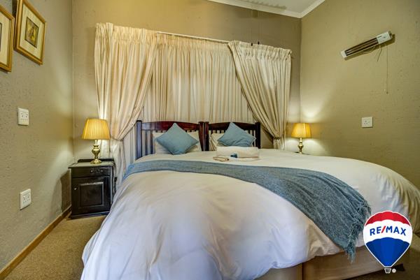 The entertainment area is STUNNING, with a TV, Bar, Pool table and another guest toilet. This leads to the beautiful pool that overlooks the garden. The entertainment area also leads to the 7 en-suite bedrooms that can be let for between R750 - R1 150 per night. There is also a treehouse that is a beautiful bedroom with an en-suite bathroom.