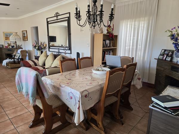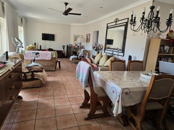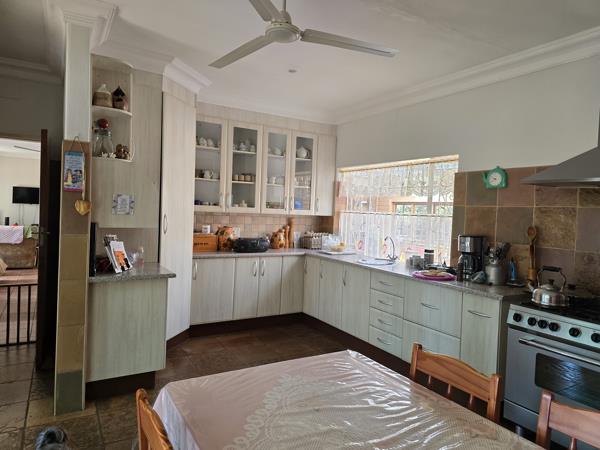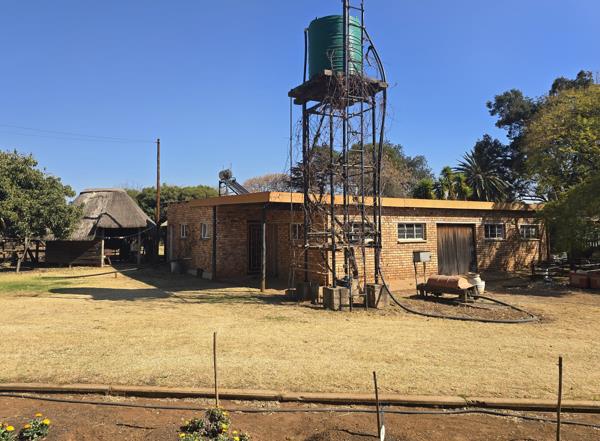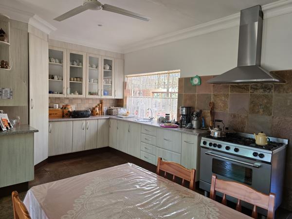 The property features three generously sized bedrooms, with the main bedroom offering an ensuite bathroom and a sliding door leading to a private outdoor space. The additional two bedrooms come equipped with water connections, allowing for easy conversion into guest accommodations or an AirBnB. The home boasts a modern kitchen with built-in cupboards and a full stove, separate from the spacious open-plan dining and lounge areas, which are perfect for family gatherings or entertaining guests. Outside, you''ll find a well-maintained lapa with its own guest toilet, a double garage, a double carport, and two boreholes ensuring no reliance on municipal water. This property is further enhanced by staff quarters equipped with solar power, an expansive workshop, a storeroom, and an office, making it an excellent option for those looking for both a home and a business opportunity.