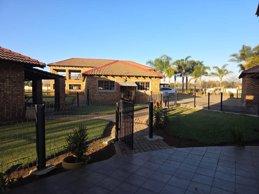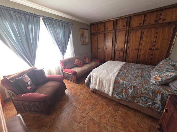 This one-of-a-kind property is the perfect solution for large or extended families seeking space, comfort, and privacy. The main house features 4 bedrooms, 4 built-in cupboards, 3 bathrooms 2 en-suite, a welcoming entrance hall, 2 lounges, a family room, dining room, study, and a fireplace. The gourmet kitchen boasts both gas and electric stoves, supported by a scullery, pantry, and laundry. Entertainment areas include 2 covered patios, built-in braai, fire pit, and landscaped outdoor zones. Sustainable living is ensured with a borehole, generator, and 10 solar panels.