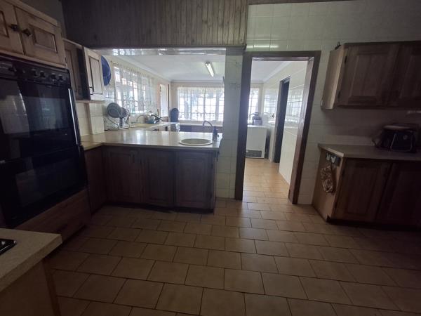 Massive kitchen fitted with ample cupboard space, breakfast nook, and generous countertops for the avid cook