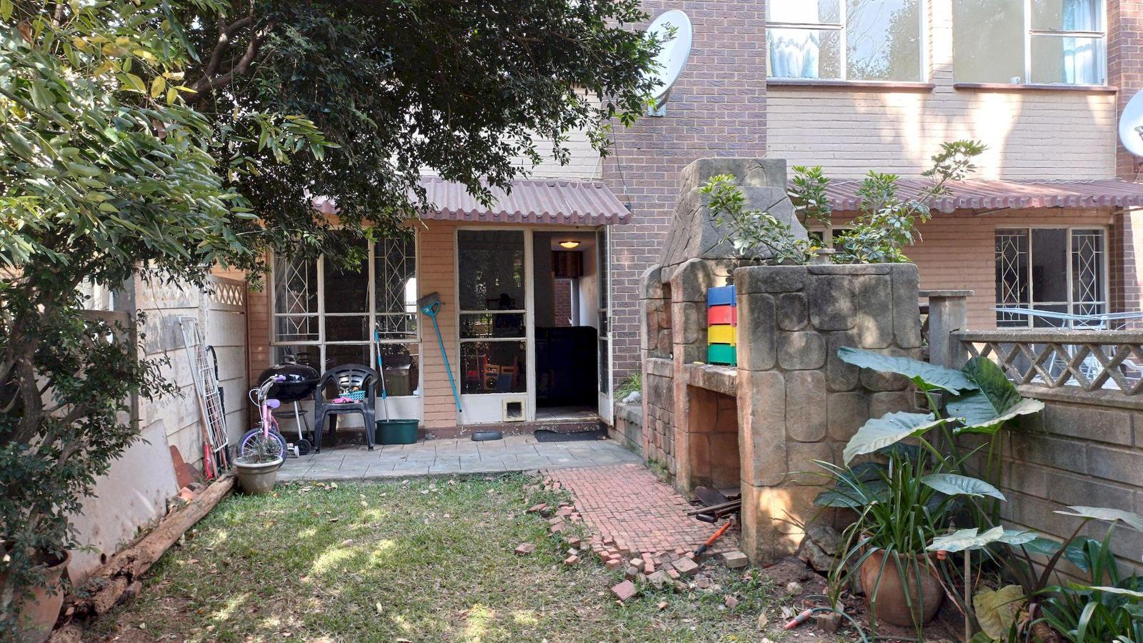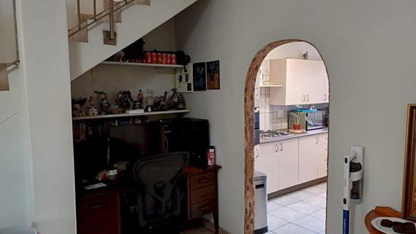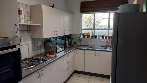 On offer are two bedrooms upstairs with a shared bathroom, and downstairs is a spacious lounge that opens out to a patio overlooking the garden with a built-in braai and covered patio.