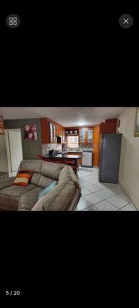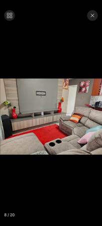 Discover this inviting 2-bedroom, 1-bathroom residence nestled within a secure estate in Croydon, Kempton Park. The home features an open-plan living area, seamlessly connecting to the kitchen, creating a spacious and interactive environment. Tiled flooring throughout ensures easy maintenance, while ample natural light illuminates the space. The living area is equipped for entertainment, boasting a built-in home entertainment setup with a projector screen, perfect for movie nights.