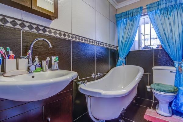 The second bathroom features a beautiful slipper bath with basin and toilet, ideal for unwinding at the end of the day.