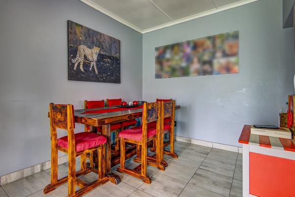 The outdoor areas of this property are equally impressive. The lush front garden creates an inviting curb appeal, while the backyard is a haven for entertainment. The covered entertainment area boasts a built-in braai, a built-in bar, and ample space for social gatherings, complete with a convenient toilet facility.