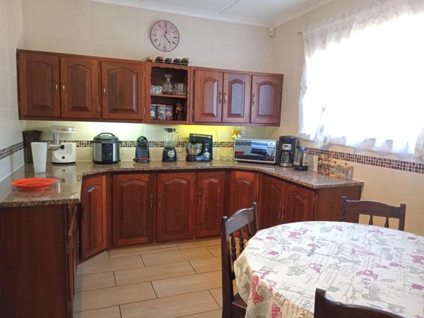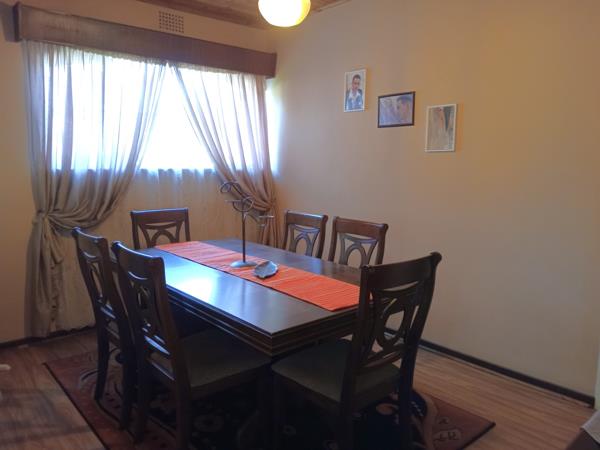 HUGE formal lounge and separate dining room with wooden floors leading to a spacious covered patio with a built-in braai with a cool outdoor misting system to stay refreshed while preparing a delicious potjie. If you get too hot, jump into the sparkling newly re-done pool. (New pool pump and all new pipes) Swim all year round with 8 solar panels to heat the pool!