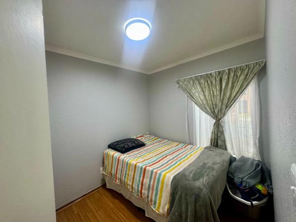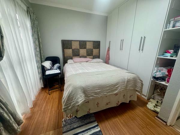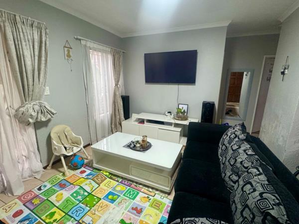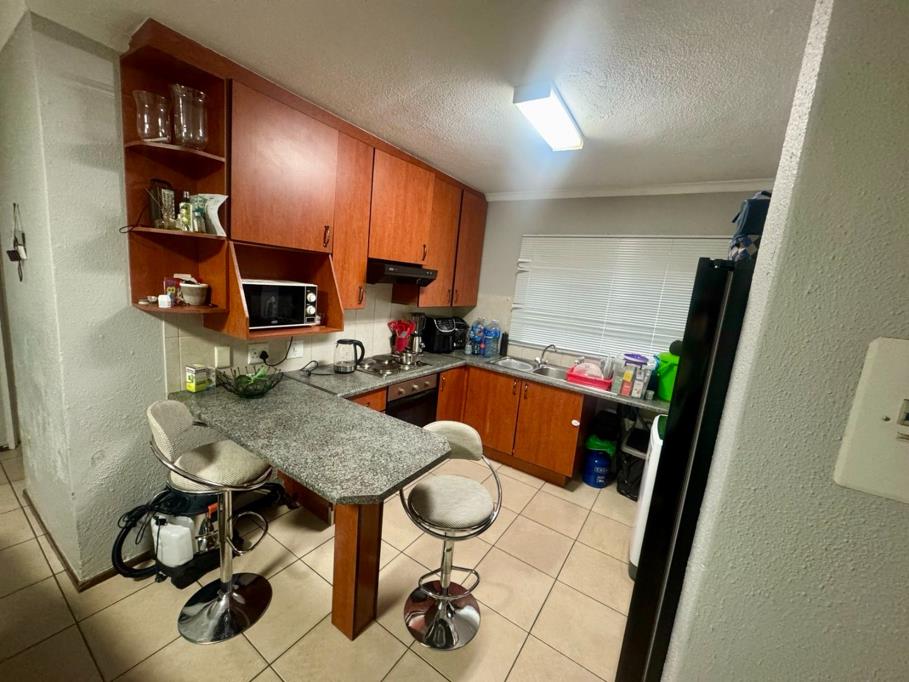Open plan kitchen flowing to a spacious lounge with a sliding door leading onto the patio with a built-in braai for your entertainment and a garden for the kids.