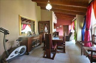 Step inside to discover a meticulously appointed interior, where spacious living and dining areas flow seamlessly, adorned with elegant tiled flooring throughout. The heart of the home, a voluminous kitchen, features a vaulted wooden ceiling, extensive wooden cabinetry, and a large range cooker, promising culinary delight. An open-plan design connects effortlessly to adjacent spaces, including a dedicated family TV room and a sophisticated built-in bar, perfect for hosting intimate gatherings or lavish celebrations.