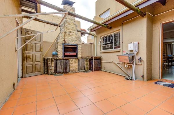 The private courtyard features a built-in braai perfect for weekend entertaining, family get-togethers, or simply unwinding outdoors.