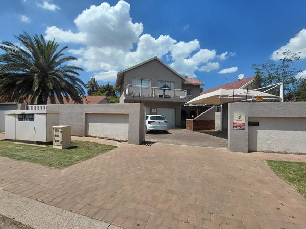 Additional features include household staff accommodation with its own bathroom, a swimming pool, fish pond, and well-maintained garden space. Parking is plentiful with four garages, a carport, and additional parking.