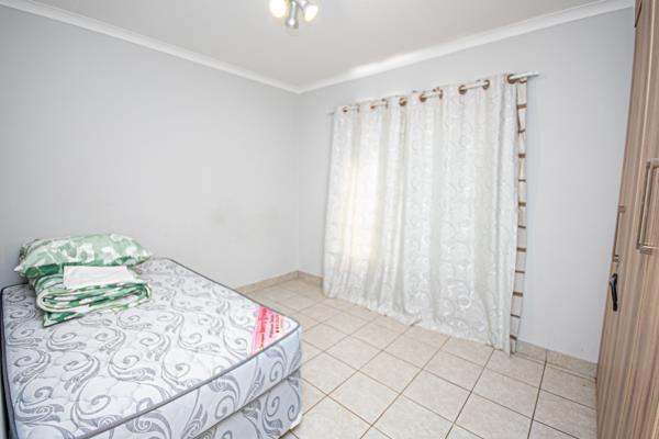 The generously sized bedrooms are designed for comfort, with the master bedroom offering an en-suite bathroom for added privacy. Both bathrooms are fitted with modern, stylish finishes, offering both a relaxing bath and a refreshing shower. The property is equipped with a solar geyser featuring a Wi-Fi timer, ensuring hot water on demand.