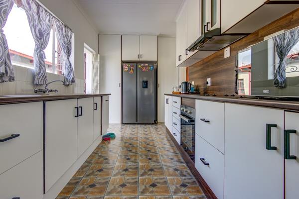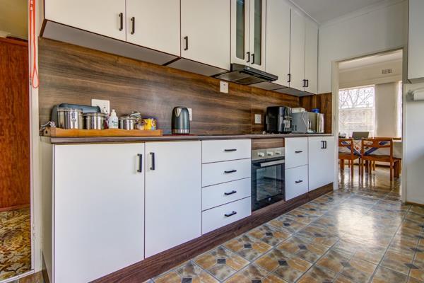 This Large property consist of the following features, Entrance hall -carpeted. Large Lounge with carpets ,Fireplace and Sliding door out too garden. .Separate Dining room with tiled floors. 3 Large Bedrooms with Carpet, 2 Bathrooms half tiled walls, bath and shower Beautiful renovated Kitchen with lots of cupboards, tiled floor and walls. Four plate Stove with under counter oven. One garage with Roll-up door. Staff Quarters with shower and toilet. Large Pool need some TLC . Harvey tiled roof ,Driveway newly paved. Walling all around. Very neat garden. .Burglar bars on all windows and also security doors. Inside enclosed area with Guard. Special features ---Patio with fire place. Internet connections. If you snooze you loose, come and view this bargain and its open for offers Near schools ,Airport. Give ne a call for viewing