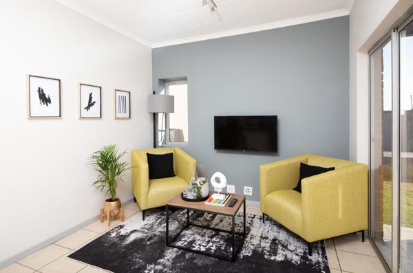 Two-bedroom modern apartments for sale based in Kempton Park. Modern, open-plan kitchen with a breakfast nook leading into the lounge/dining room. One full bathroom with a shower and a bathtub.