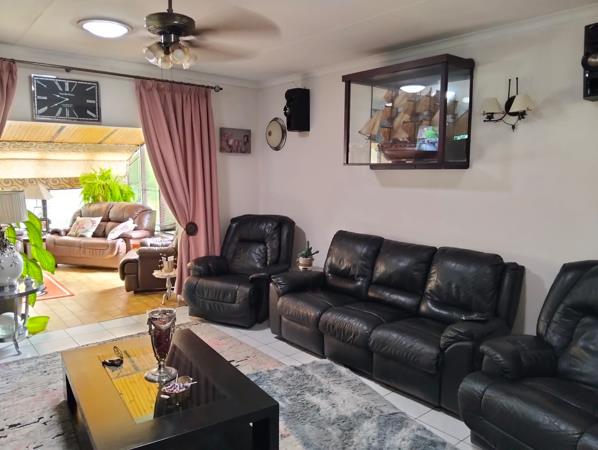 Enjoy multiple living areas, including a separate lounge and a large sunny family room. The dining room can easily fit a 8-seater dining room set with a sideboard. Make memories with family and friends outside in the cozy outdoor entertainment area, where you can relax and unwind in the jacuzzi while watching the rugby and enjoying the built in braai. With the convenience of a toilet, shower and basin in the entertainment room there is no need for guests to invade the privacy of your home.