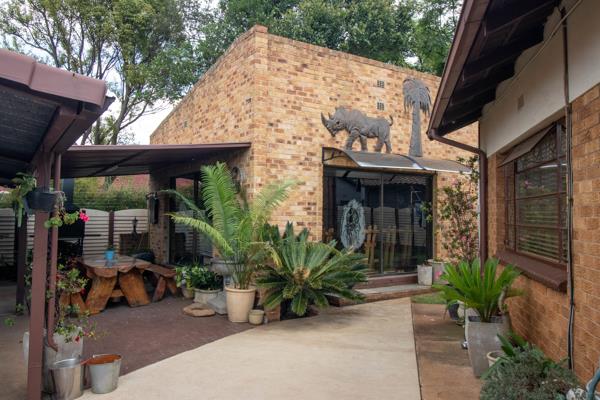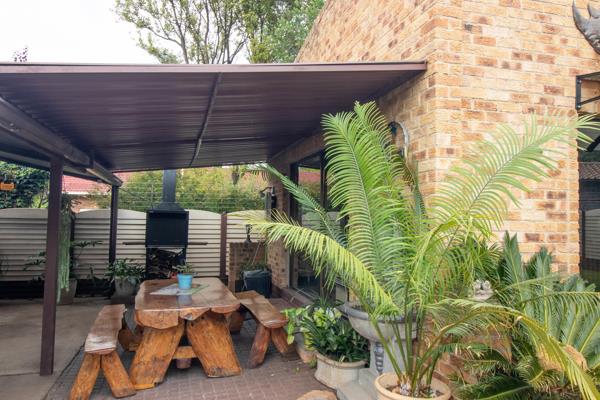 Outdoors, the lifestyle continues with a covered patio, braai area, lapa, jacuzzi, and a beautifully established, landscaped garden enhanced by a sprinkler system private, level, and picture-perfect. Parking is exceptional, with carports, ideal for caravans or additional vehicles and automated garages.