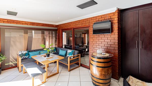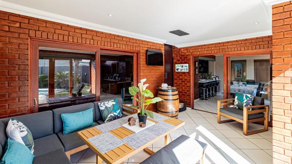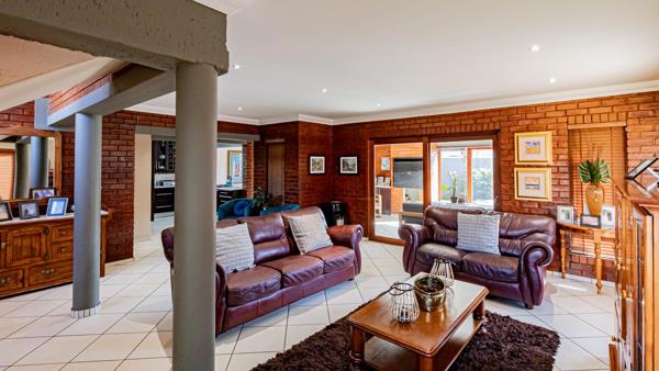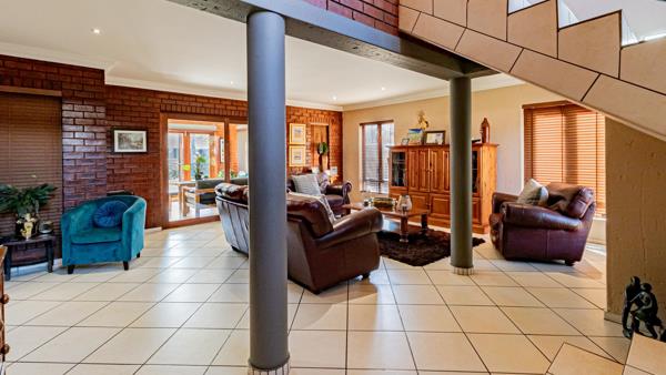 An open plan living room, kitchen with gas hob and scullery, dining room, an enclosed entertainment/ braai room, spacious double garage with staff quarters.