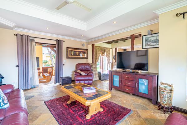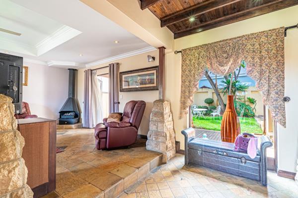 Step inside to an inviting open-plan layout designed for comfortable living and entertaining. The home features a spacious lounge and a dedicated family TV room, both benefiting from abundant natural light and durable tiled flooring. A freestanding fireplace adds warmth and ambiance, while ceiling fans ensure comfort. The well-appointed kitchen boasts warm wooden cabinetry, dark granite countertops, a tiled backsplash, and modern appliances including an integrated oven and stainless steel range hood. A convenient breakfast bar and a pantry enhance functionality, flowing seamlessly into the dining area. Appliances included are the fridge, washing machine, tumble dryer and dish washer.