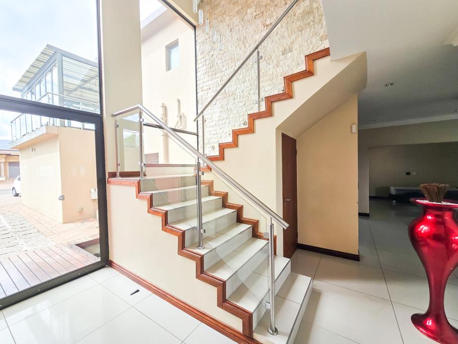 This stunning home, located in the secure and prestigious Glen Eagle Estate in Glen Erasmia, offers both luxury and convenience. The property features four spacious bedrooms, each with its own en-suite bathroom and built-in cupboards, providing privacy and comfort for every member of the family. One of the bedrooms is conveniently located downstairs, ideal for use as a guest suite or for those who prefer to avoid stairs.