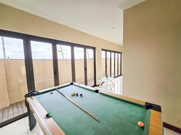 The open-plan design of the home allows for seamless flow between the two lounges and the spacious dining area, creating a bright and airy atmosphere throughout. For those who love indoor-outdoor living, the indoor braai area features stacking doors that open to let in the sunshine and fresh air on warm days.