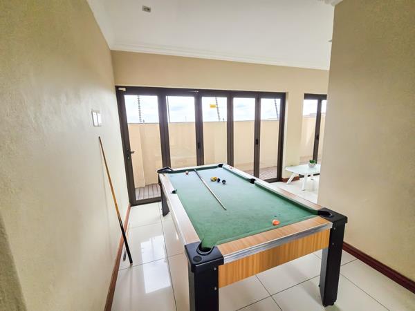 Upstairs, you''ll find a spectacular bar area, which boasts its own private entrance. Situated at the front of the house, the bar features a built-in bar with a beer-on-tap dispenser, making it the perfect space for entertaining. The bar area is expansive, with stacking doors that open all around, allowing for an unobstructed view of the surroundings, and the floor is finished with astro turf for a fun, relaxed vibe.