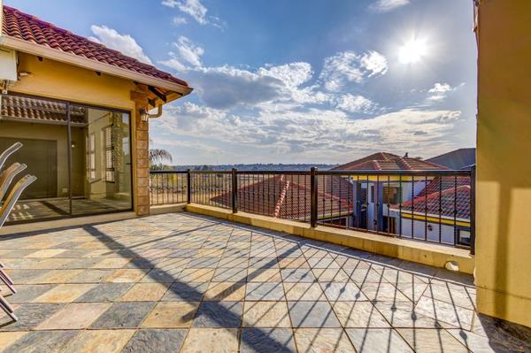 Step inside to an open-plan lounge and dining area that flows seamlessly into a covered, enclosed patio featuring a built-in braaisliding doors enhance the space and invite the outdoors in. A separate office area off the patio provides an ideal work-from-home setup. Beautiful stairs lead you down to a meticulously landscaped garden and pool area, adorned with magnificent palm treesthis is where the true potential of the home shines.