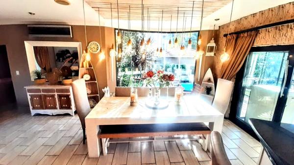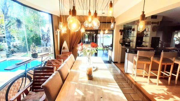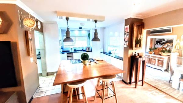 The living areas flow seamlessly, complete with a built-in bar that leads to an enclosed patio - perfect for those summer braais with friends, all while keeping an eye on the sparkling heated saltwater pool in the landscaped garden.