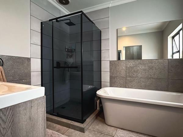 Three beautifully appointed bedrooms, complemented by two ultra-modern bathrooms and an additional guest bathroom, provide sanctuary and style. The entertainment area, complete with a built-in braai, flows into an immaculate gardenperfect for hosting in grandeur. A double automated garage completes this prestigious offering.