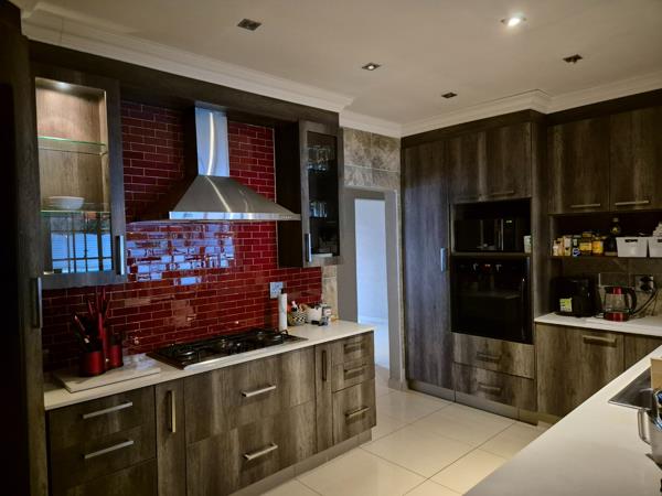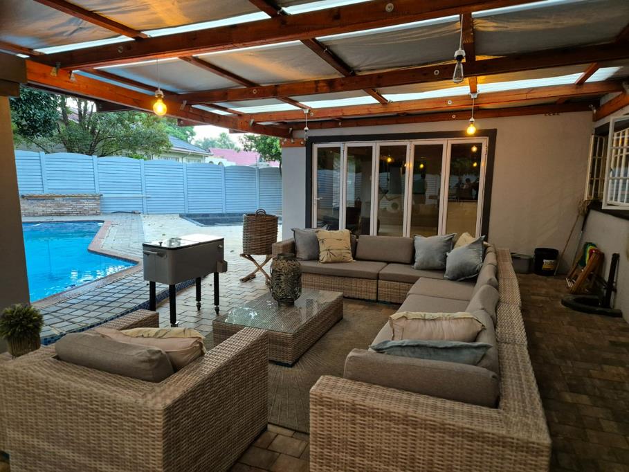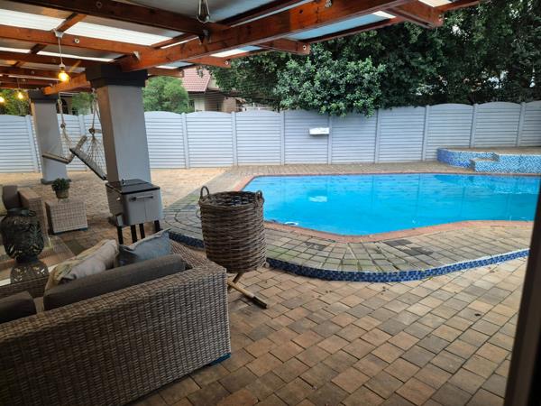 The large front garden with its jungle gym, that is situated under beautiful large trees, is a safe haven for kids to play in. The large and very private back yard consist of a lovely, new and large pool a boma and a large patio.
