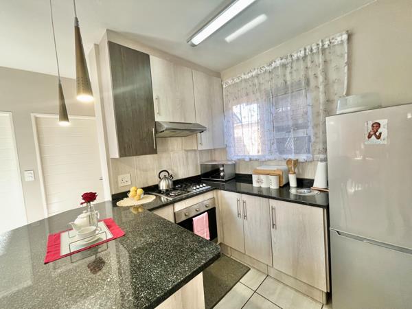 For sale in Glen Marais is a spacious 3-bedroom townhouse, featuring a main bedroom with an ensuite full bathroom, alongside a convenient storage room and downstairs study. The interior boasts a large open-plan lounge and dining room, complemented by a kitchen equipped with granite countertops and a Gas hob. A scullery, complete with built-in cupboards and a double sink, leads out to a washing area. Sliding doors off the lounge and dining area open into an enclosed louver built-in braai and wood storage area, perfect for entertaining. The property includes a double garage, guest toilet, and is beautifully illuminated with modern lighting throughout, surrounded by a pleasant garden ideal for hosting intimate gatherings with family and friends.