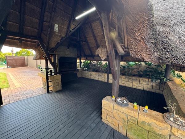 The open-plan design includes a generous dining room and a well-equipped pantry and scullery. Each of the two en-suite bathrooms ensures privacy and convenience, complemented by two additional bathrooms. With seven built-in cupboards, ample storage space is never a concern. The home also features a guest loo and a staff quarters for added functionality.