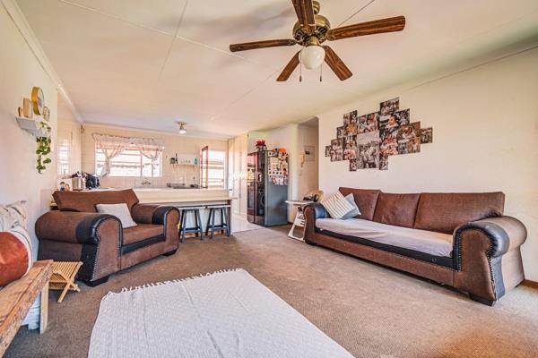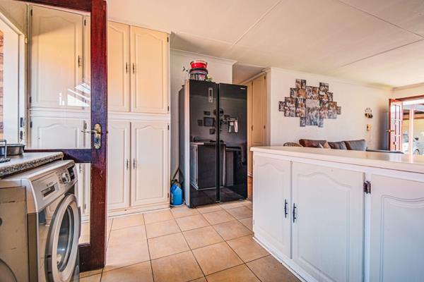 Each of the three generously sized bedrooms is carpeted and fitted with built-in cupboards, providing comfort and ample storage. The home boasts two modern bathrooms with tiled floors, offering convenience and contemporary finishes.