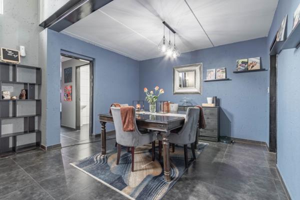 Kitchen opens onto open plan sun splashed dining with guest loo, and large extended loungeTV room with cozy wood burning fire place and stylish dark porcelain tiles.