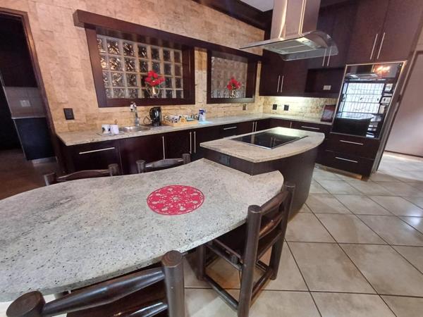 The 7 generously sized bedrooms all come with walk-in cupboards and tiled floors, offering both style and functionality. There are 4 well-appointed bathrooms and a convenient guest bathroom, all with high-quality tiled finishes for a modern, sleek look.