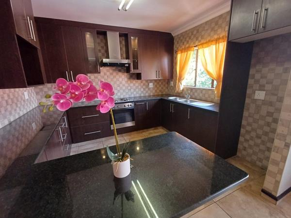 Step outside to enjoy the private pool and relax in the neat, well-maintained garden, which is fully enclosed and features an automated sprinkler system to keep everything lush and green. A braai area with a lapa is perfect for outdoor entertaining.