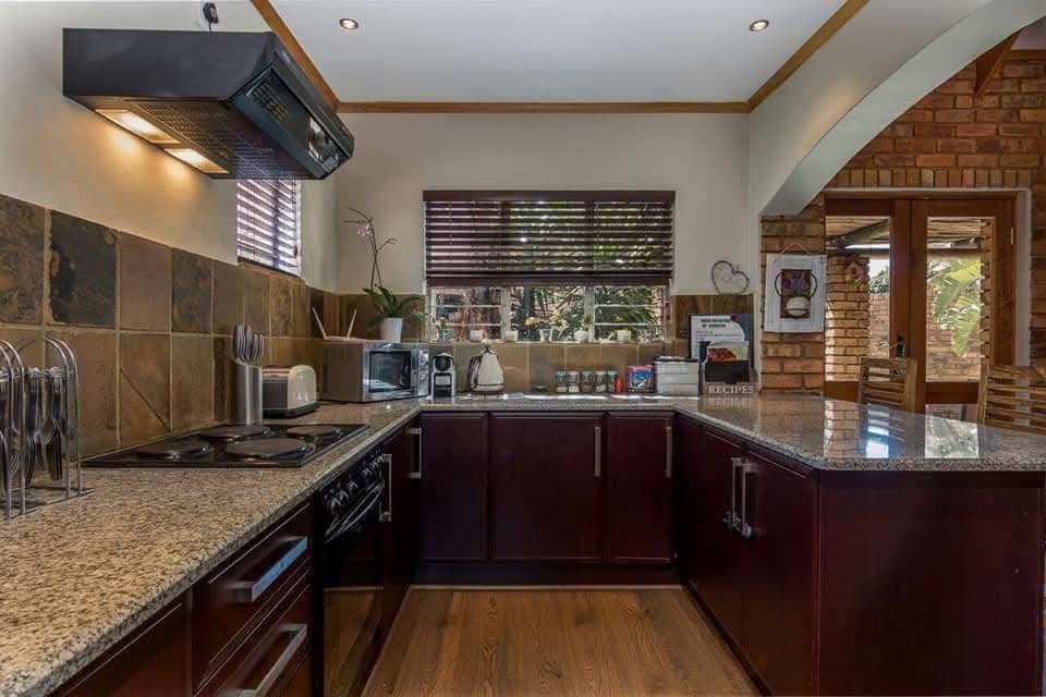 The kitchen has a separate washing area, electrical stove and oven. Built in cupboards with Granite tops, a breakfast nook. The property also has a beautiful, covered patio with a sparkling splash pool.