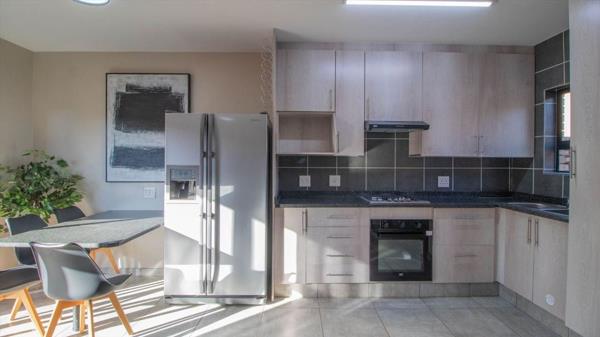Entrance hall. Open plan lounge and dining room. 2 Bedrooms. Main bedroom with an en-suite bathroom. 2 Modern bathrooms. Modern kitchen with a breakfast counter, granite tops and a scullery. Single garage. Single carport parking. Communal pool. Private garden. Pets allowed.