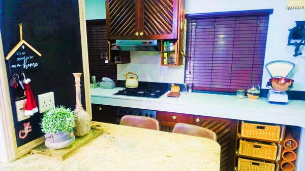 Features laminated flooring, gas stove, extractor fan, and a separate scullery for added convenience.