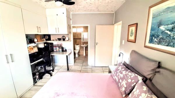 Key features include two dreamy bedrooms, two well appointed bathrooms, functional kitchen with a thoughtful layout for culinary enthusiasts, comfortable living areas that leads to a canvas-enclosed balcony with a built-in braai for all year enjoyment, garage, carport and small storeroom.