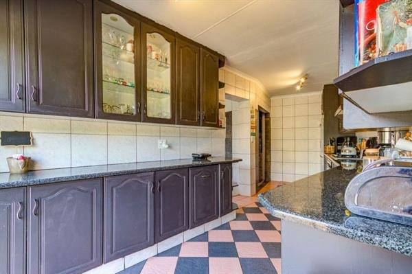 Presenting a distinguished residential property in the suburban enclave of Glen Marais, Kempton Park, South Africa, this expansive residence occupies a generous 1100 sqm erf. The property exhibits a unique architectural blend, featuring a primary structure with durable brick construction and a green tiled roof, complemented by distinctive thatched roof elements that imbue a rustic charm. The exterior boasts a well-maintained front yard with mature palm trees, a large paved driveway, and a convenient carport, ensuring ample parking provisions. An additional auxiliary building offers versatile space, enhancing the property''s functional appeal.