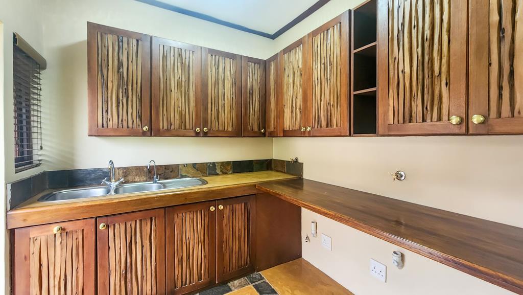 Enjoy entertaining on the expansive covered thatched patio, fitted with natural roll-down blinds and a built-in braai the perfect space for hosting friends or simply unwinding while overlooking the tranquil surroundings.