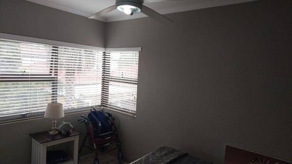 Upstairs, the home offers three comfortable bedrooms, each designed for relaxation. Two of these bedrooms feature abundant natural light through large corner windows, fitted with blinds for privacy and equipped with ceiling fans for optimal comfort. The property includes two well-appointed bathrooms, with one being an en-suite, both featuring fully tiled walls, a bathtub with an overhead shower, and a vanity with a sink.