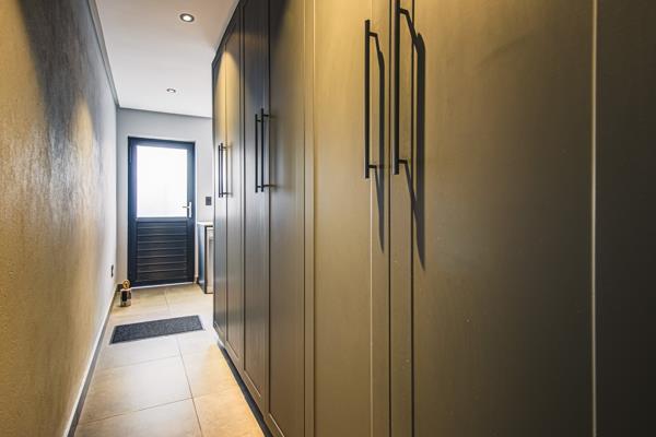 Outdoor living is equally inviting, with large sliding glass doors leading to a private patio area complete with a built-in braai, perfect for entertaining. The property includes a well-maintained garden and staff quarters. Parking is ample with two garages and additional space for a trailer and motorbike with direct access to your home. For enhanced comfort, the home is equipped with air conditioning and automated blinds.