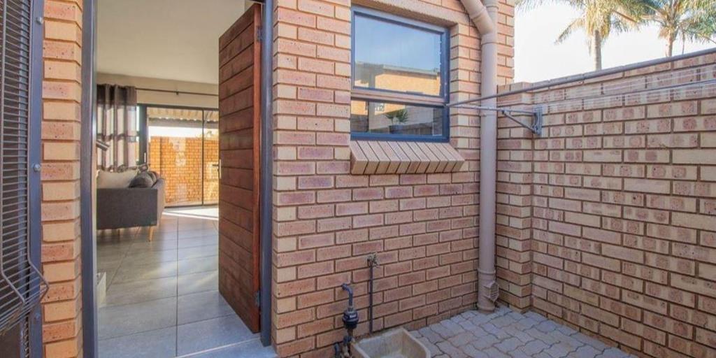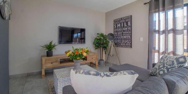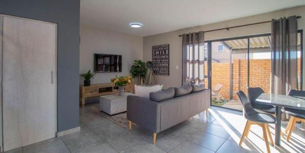 A welcoming entrance hall leads into a bright, open-plan lounge and dining area, ideal for both everyday living and entertaining. Sliding doors open onto a covered patio with a built-in braai, overlooking a private, low-maintenance courtyard garden finished with artificial grass and mdashperfect for small pets and effortless outdoor enjoyment.