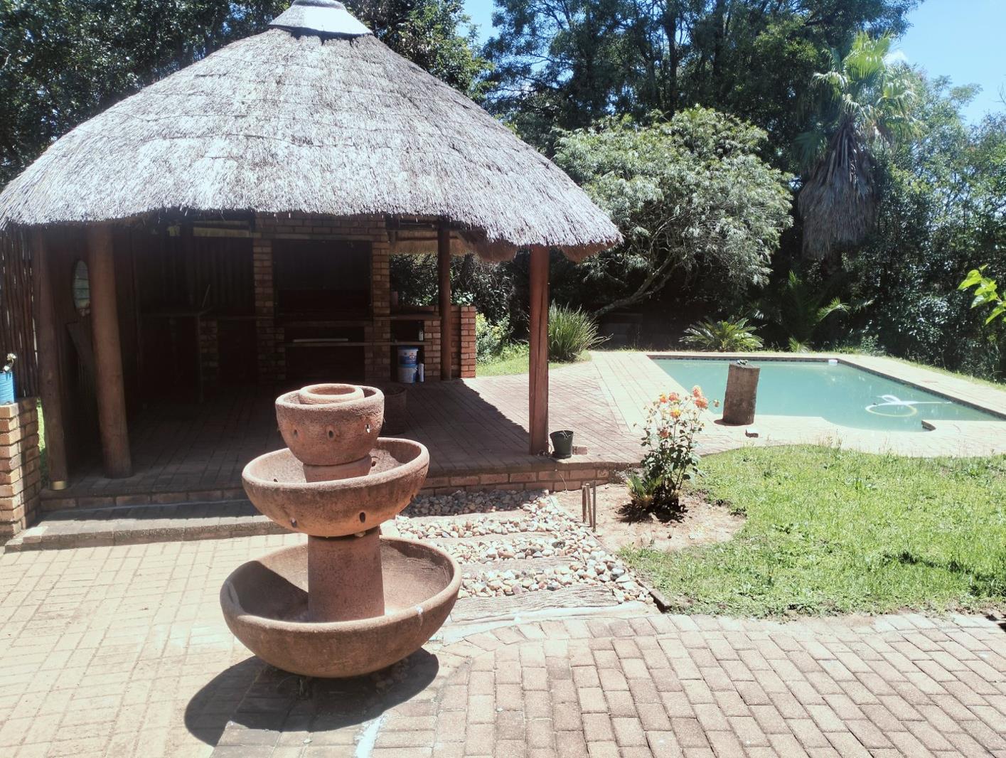 Outdoors, enjoy a beautiful private oasis complete with a boma, lapa, and sparkling swimming pool truly an entertainers dream.